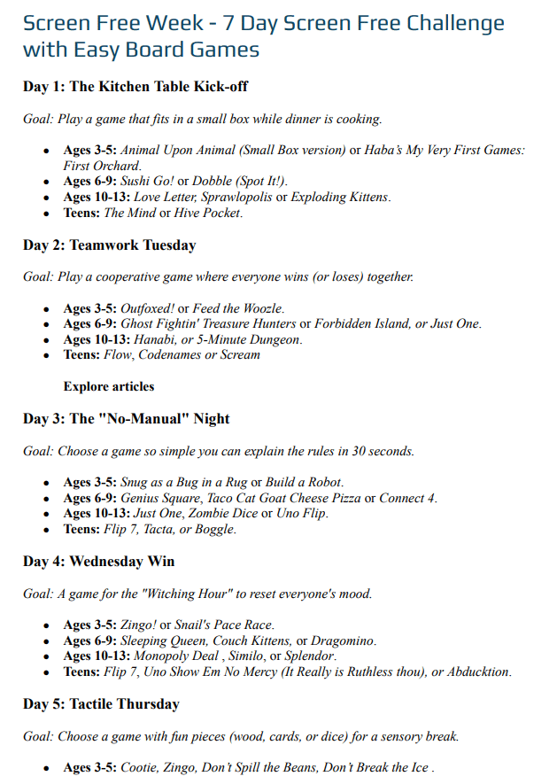 Celbrate Screen-Free Week - Any Week or May 4-10, 2026